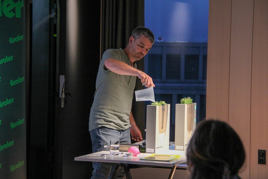 Im Anschluss an den Design-Sprint* mit den oben angeführten Partnern fand im Rahmen eines Bootcamps* der Bau eines ersten Prototyps statt, der erstmals beim Tag der offenen Tür am 26. Oktober im Tiroler Landhaus präsentiert wurde. Er hatte naturgemäß noch zahlreiche Schwächen; beispielsweise war das Gefäß noch nicht hundertprozentig dicht! Aus den praktischen Erfahrungen und Erkenntnissen des ersten Einsatzes und weiteren Überlegungen entstand PEAT 2.0. Es stellte sich heraus, dass die Erfordernisse der Vermittlung am besten mit zwei Modellen erfüllt werden können. Ein Modell repräsentiert das vitale Moor und stellt auch das Moorwachstum dar. Das zweite Modell zeigt das entwässerte Moor, den Wasserabfluss und die Stauwirkung von Spundwänden bei der Renaturierung.